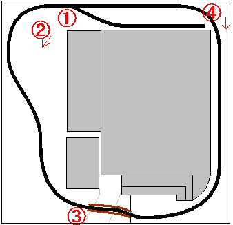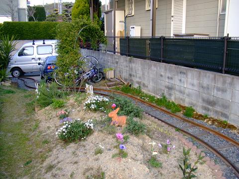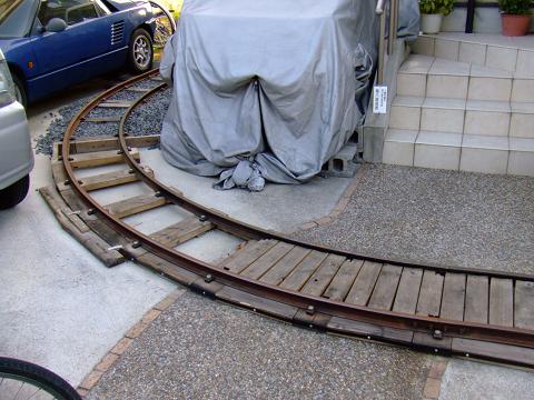 明野軽便鉄道 こちらでは明野軽便鉄道の路線をご紹介します。 (一部不十分ですがご了承ください) ▲ 明野軽便鉄道の路線図です。 走行順路は@→A→B→C→@が基本です。 @ ▲ 明野軽便鉄道のポイントです。 桜谷軽便鉄道のものとは大変異なります。 A ▲ ここがお庭から自動車の隙間を通って玄関にいくところのカーブです。 B ▲ 玄関前です。 線路でけつまづくことがないようにされています。 C ▲勾配を上りながら家との隙間を走っていきます。