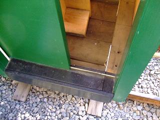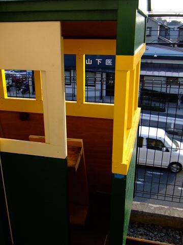 客 車 明野軽便鉄道の客車です。 この車両は三回ほどお色直しされています。 ▲ 客車の外観 製造当初は青と白というカラーでしたが しばらくしてから今の色に変わりました。 ▲ ちゃんと客車に扉があります。 手動で扉は開閉してください。 ▲ 車内には機関車につながるボタンが設置されています。 ▲ 車内に温度計も完備されています。