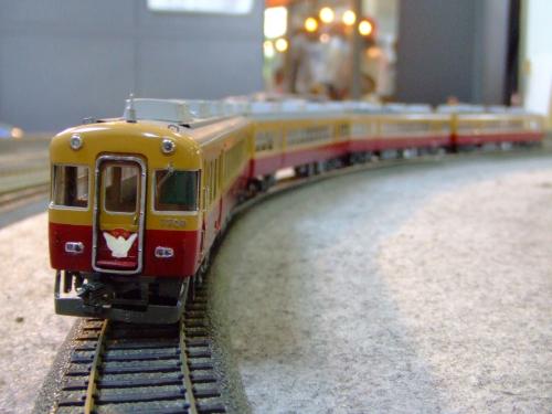 長沢軽便鉄道 HOゲージ課 【3000系】 大阪にある模型店より導入 ただし真鍮車4両に小型モーター2個では辛い為最近3モーターになった。 こちらはモーターへの負担を減らすため 最近梅小路SL館では運行回数を減らしている 導入年 2000年以降 製造元 不明 車体 真鍮(シンチュウ) 基本編成 京阪3000系×4両