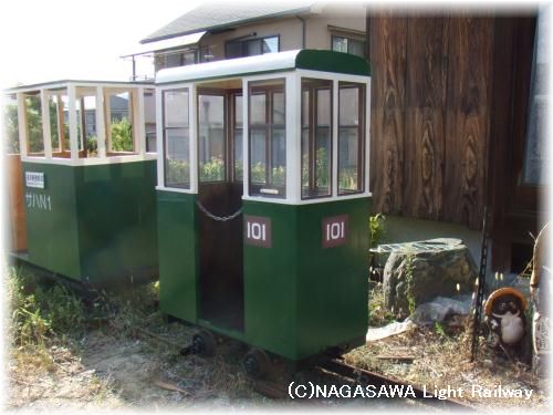 この車両は軽便鉄道でよく見られた2軸客車をモデルとして造られた車両 ![]() 車内は、向い合せクロスシートで2名まで乗車可能です。 室内灯や製造版・禁煙板などが設置されています。 この室内灯は他の車両と違って乾電池(単3*3)で点灯します。 窓は開閉可能で上下の窓伴に開けることができます。(一部固定) ![]() 長沢軽鉄転属当時の姿 登場当時からこの塗装で活躍してきましたが、車体の痛みが激しいため長沢軽鉄カラーとなりました。 車番は桜谷スタッフの希望によりそのまま残す形で現在の姿に落ち着いています。 |