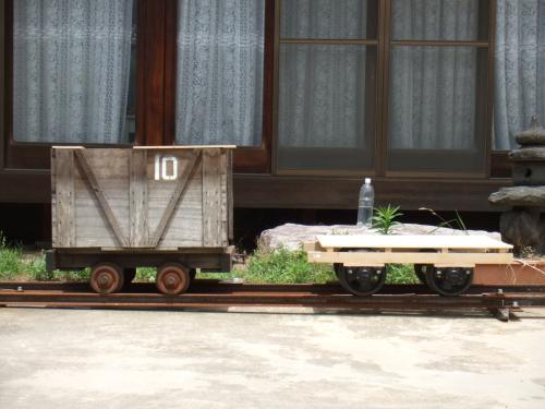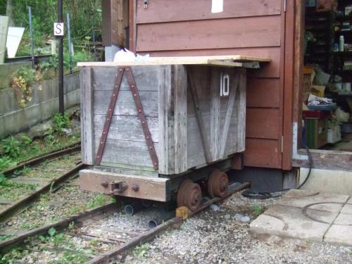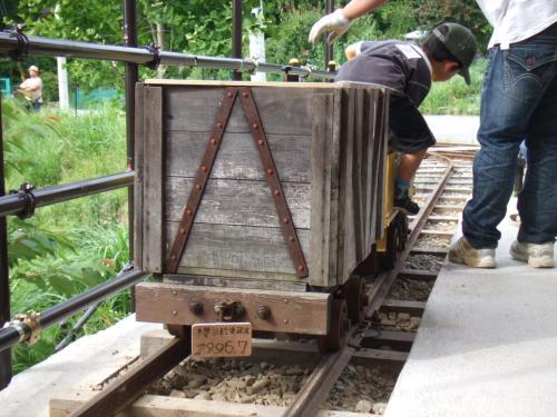 鉱車10号の連結部分には長沢軽鉄て使用する製造板を吊るした。 鉱車10号の上の部分には送別板を掲示していた。