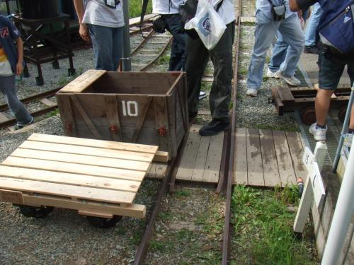 そのときの荷台の状態である。 左から鉱車10号台車・N1・鉱車10号車体 の順である