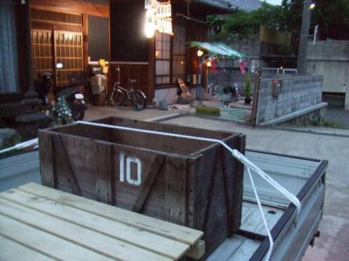 鉱車10号とN1(長沢軽鉄車両)を軽トラック(長沢軽鉄所有)に積み込み、 大阪の豊能町から京都の長沢への旅が始まる。 桜谷駅では桜谷少年スタッフに拍手で見送られながら桜谷を後にした。 17:30頃のことであった