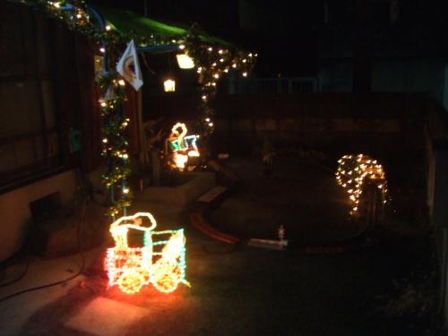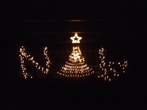 ▲第4回目となる「クリスマスイルミネーション in ベランダ」 今年のテーマは「長沢軽鉄とクリスマス」 左より「長沢軽鉄ロゴマーク」「クリスマスツリー」「1st」です。