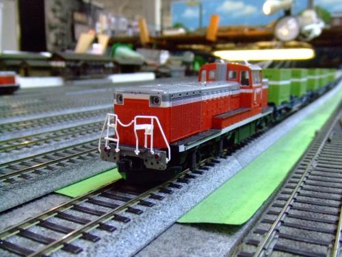 長沢軽便鉄道 HOゲージ課 【DE10 暖地形】 EF65の代行車として登場するため通常は本部所属 主にコンテナや貨物を引くことが日常の仕事である それ以外には構内の入れ替えである 導入年 2003年以降 製造元 カトー 車体 プラスチック 基本編成 [DE10]-[コキ×3両]