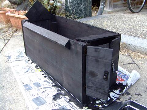 ▲下塗りを塗り終えた直後の写真 乾いていないので黒く見えます。