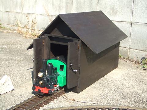 新車庫完成 大変長――――い間設計段階が終わり 新しい長沢軽便鉄道の車庫が建設開始しました。 今回の車庫のコンセプトは「古さ」 わざと隙間空けたりなどをしておりますのでご了承願います。 それでは新しい車庫をご覧下さい。▲組み立て間もない姿の車庫 これから塗装していきます。