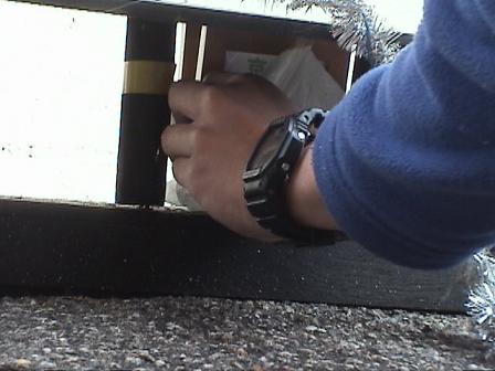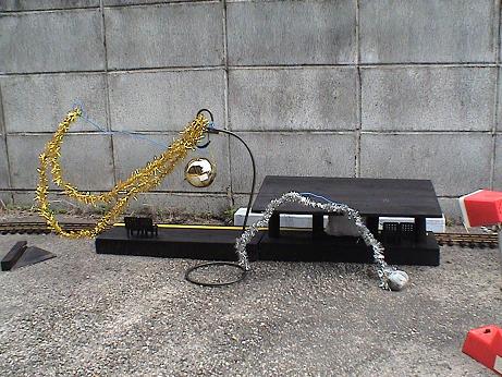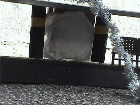 ▲紙が反対だったのです。(「おめでとう」と書いてあるのに) くす玉割りの後一番列車が到着しました。